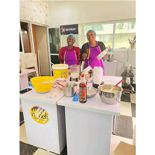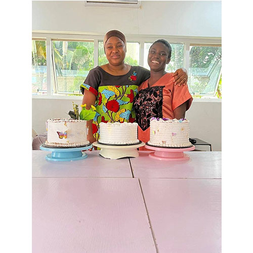 Two participants are undergoing baking training at Nonelicrafty Cakes, while the remaining two are receiving fashion design training at Haligam Fashion School and Cathy’s Couture.